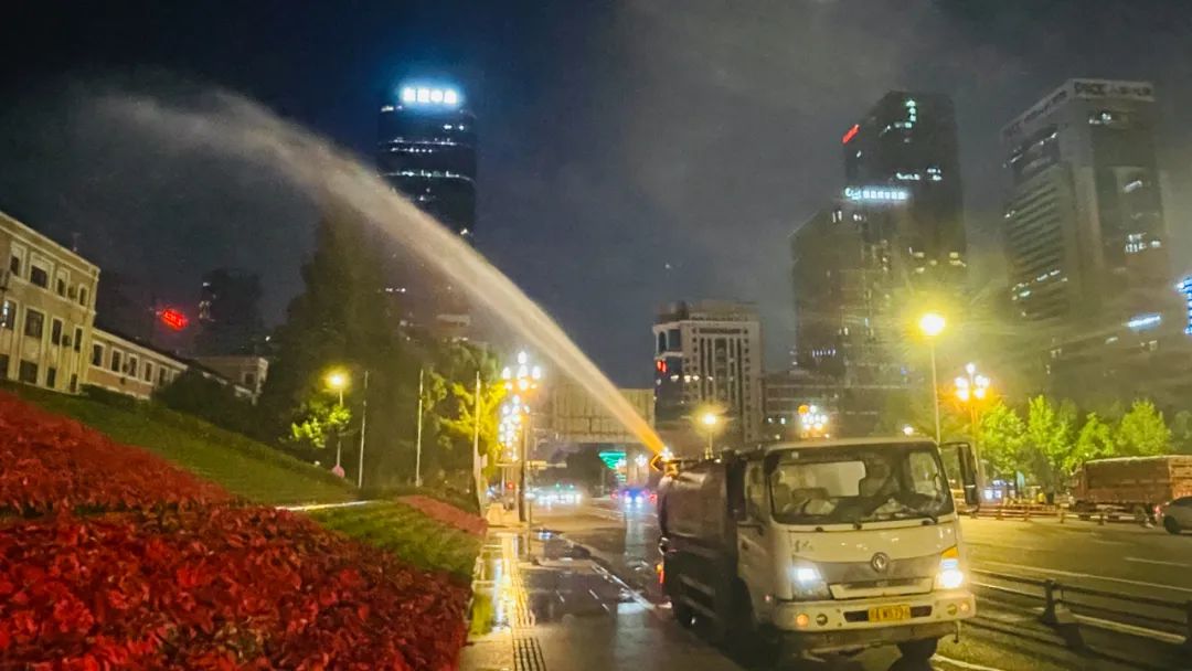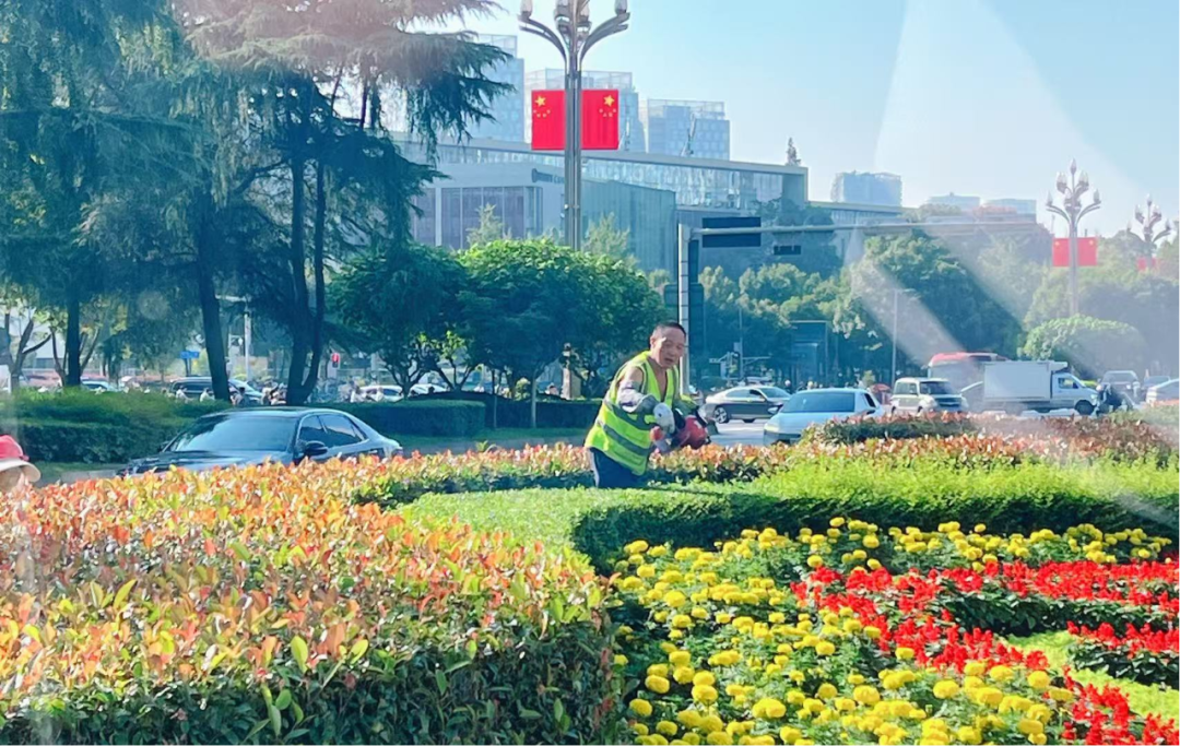 同时,日常派出多名工作人员分区域进行专班巡查维护,夜间安排水车进行浇灌,对各点位的景观进行精细化管理,如对容易受阳光灼伤的花卉点位设置遮阳网作为防护,以保证景观的展示效果。